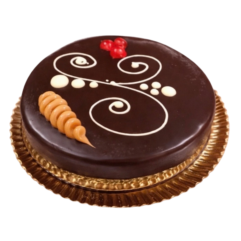 Bizcocho, trufa montada, ganache de chocolate blanco