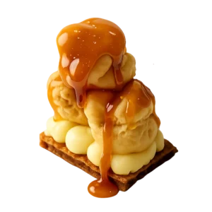 Base de hojaldre, crema pastelera, profiteroles de crema y caramelo